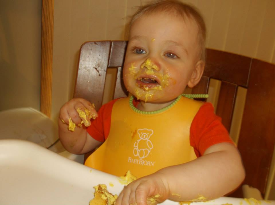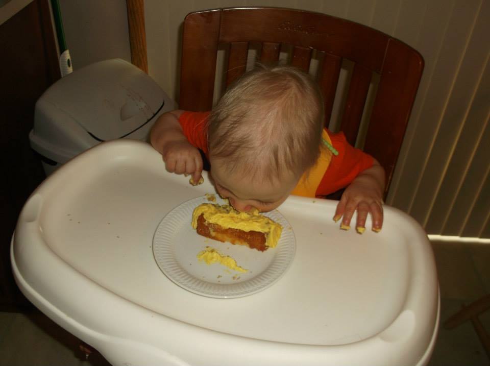 I love the progression of him eating it here. He never did like to get his hands dirty, we had to encourage him to finger pain and he’d want to clean his hands off right away.