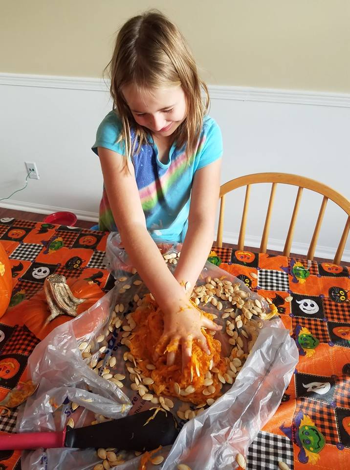 She had a blast, and really enjoyed all the fun new activities. But, oh…my heart just hated she was doing it all alone. That she didn’t have her brother to look to with excited eyes as the tree light up, or to splash around with in the pool with the pumpkins. I watched her face as she cleaned out her pumpkin and couldn’t help but remember when she had a sibling, another kid, to share the uncertainty at the feeling of the goopy insides like she did just two years earlier…(don’t mind the editing–Molly was in an underwear-only kick)
