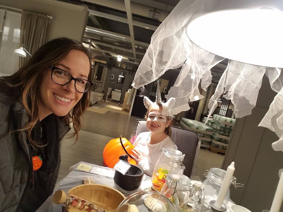 This year though, I had all that from the past on my mind again, but also felt a more intense regret over Molly’s present too. We had several fun events to check out in our new home here–swimming with pumpkins, a Halloween tree and light show to see, and big box stores that had festive activities.