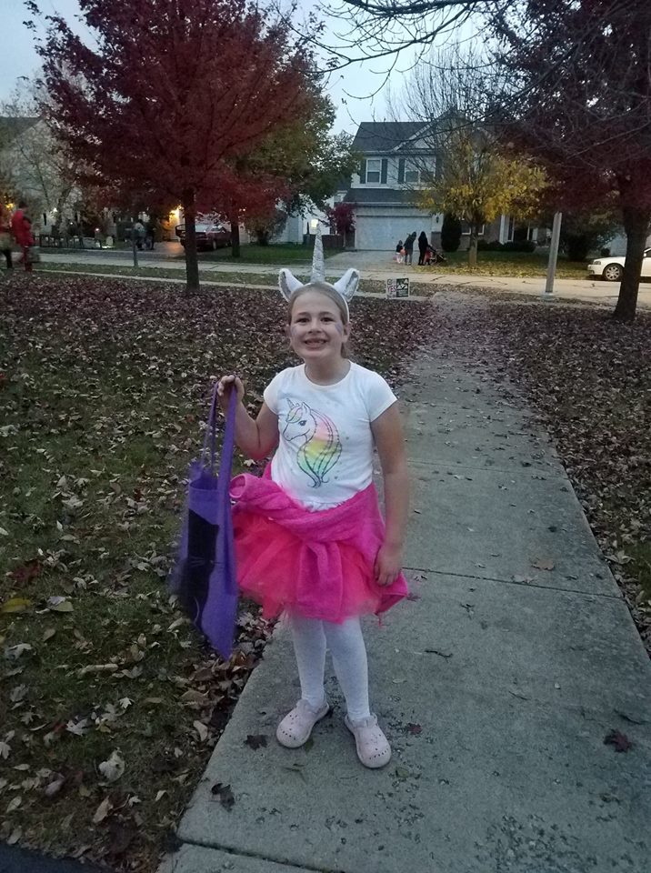 A couple days before Halloween, after she had already done all these things alone already, I was bracing myself to watch her trick or treat by herself. I prayed I could be as strong as her and enjoy the evening. And then, our new friends asked us to trick or treat with them around the neighborhood. What a welcome offer! God gives us only what we can handle, and a break just when we need it! We had an awesome Halloween, and Molly didn’t have to trick or treat alone after all.