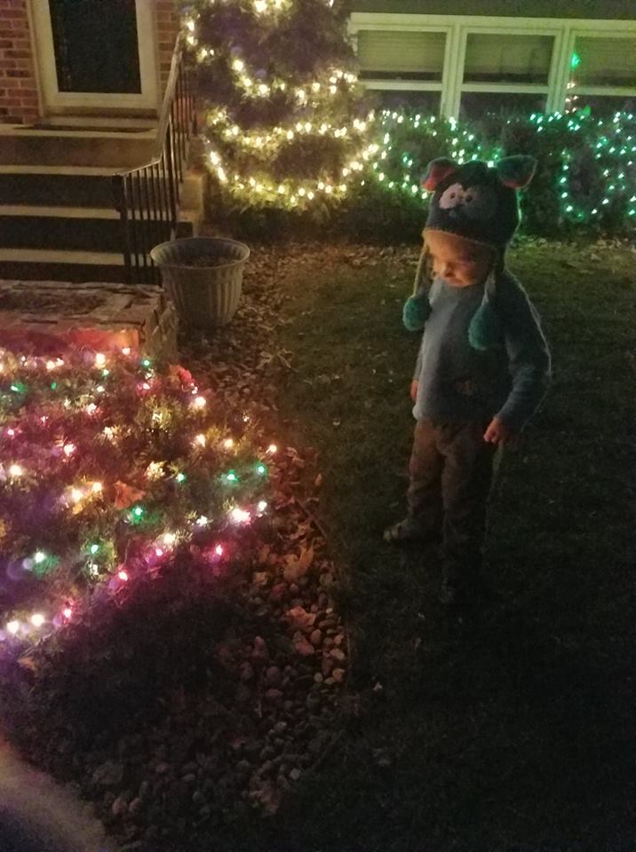 I could hardly watch, dreading what would “probably” happen to him next, the injustice and tragdy of it all. But I did, with help from Above, and I felt an unexplainable peace. It all was going so well that I just kept putting on lights! I strung lights around almost every bush in our front yard while he played.