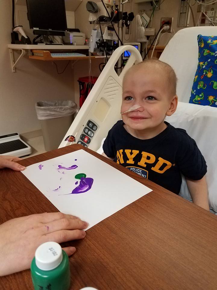 He didn’t get to finger paint with his friends, but with his child life specialist friends.