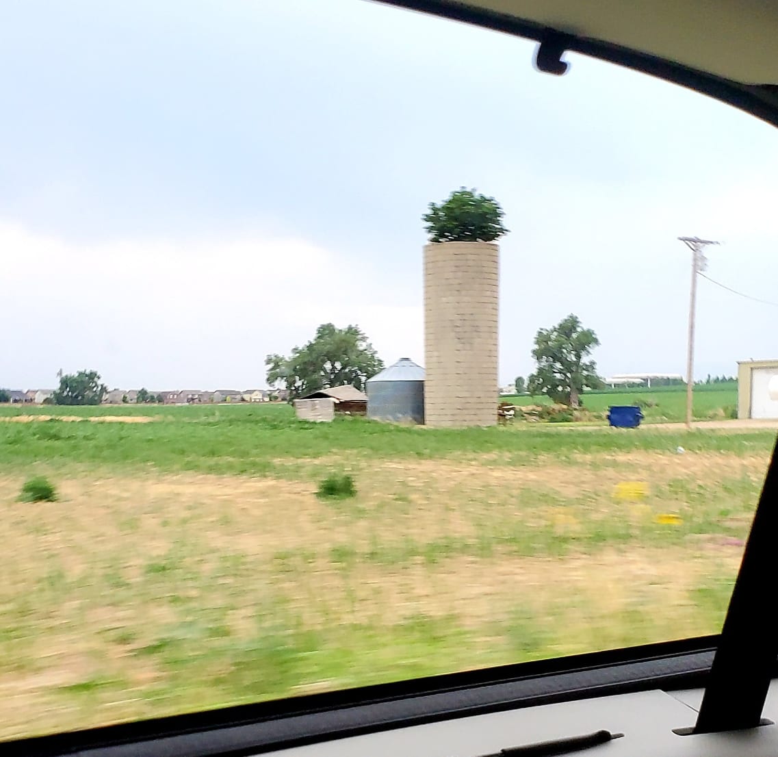 Now that we’re looking, on a different trip, Molly pointed out a tree growing out of the top of an old grain bin. We both thought that was pretty unusual, something funny to see. You don’t see that everyday! It looks like a tall skinny pineapple Molly said.