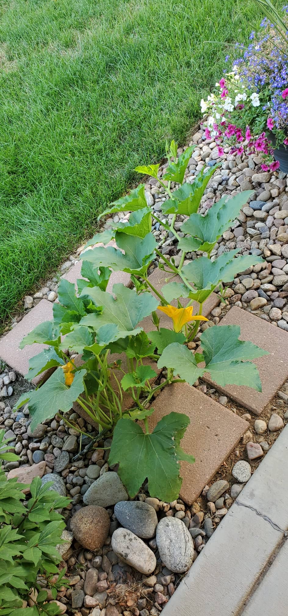 I’m watching it get longer and longer, and have nice big yellow flowers. No pumpkins yet, but everyday I check!
