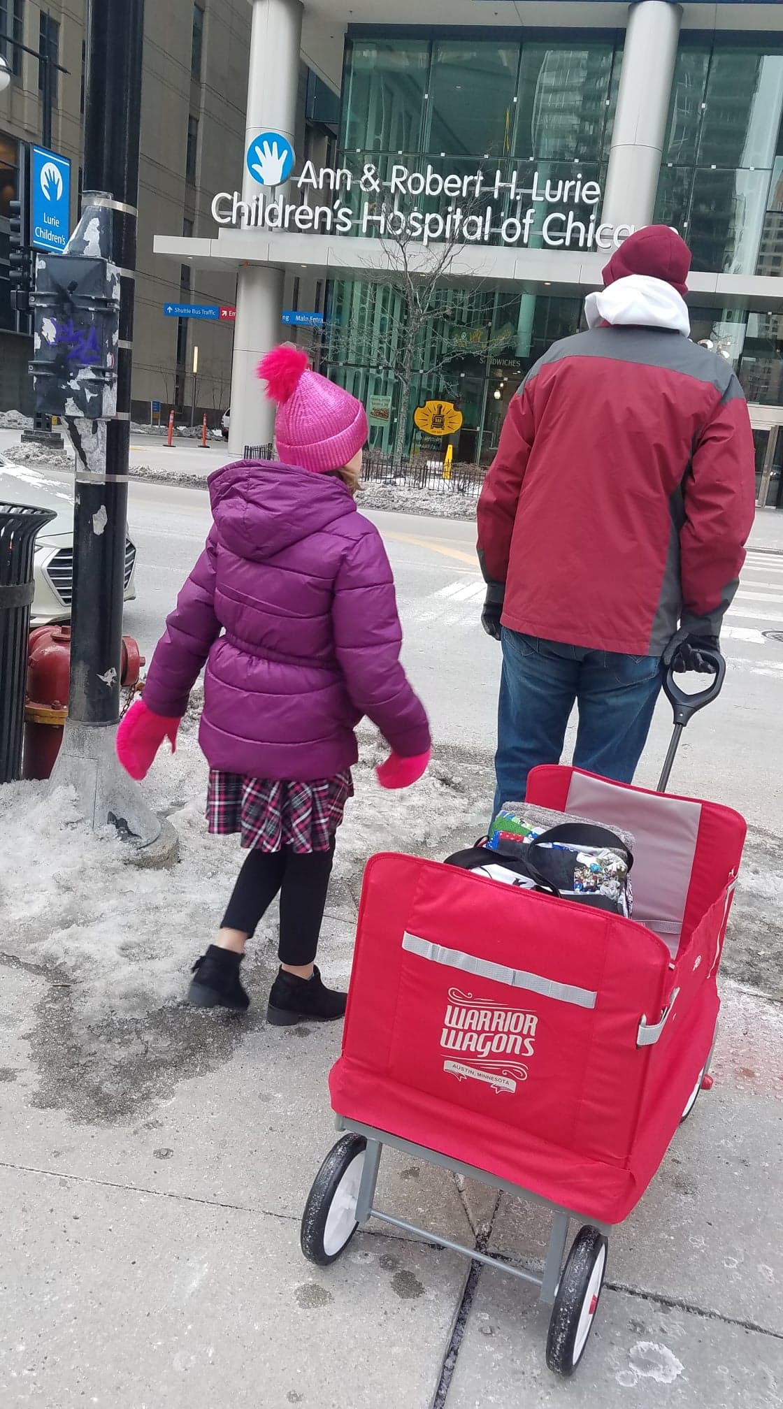 It happened that we had a Warrior Wagon to bring into the city for a new family at Lurie. I say happened, but I know God had this timed out perfectly, even sending a snow storm to ensure we’d take the wagon on Sunday to the family instead of Saturday like we had planned.