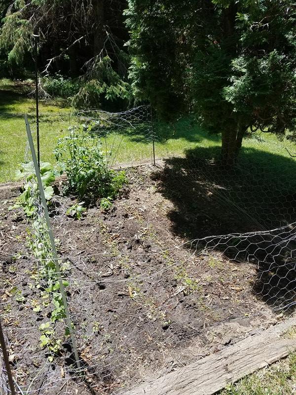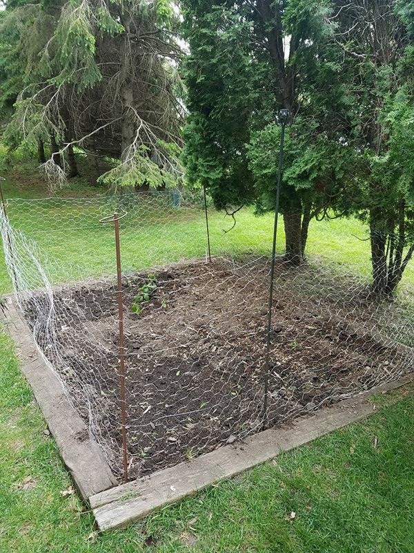 Not long word must have gotten out among the neighborhood rabbits, because I swear there were a dozen having a social in my yard the very next weekend. It was like they were just waiting for the seeds to sprout and they’d have their salad luncheon. So Molly and I went to Runnings and got some chicken wire. I forgot stakes, but found poles I could use in our shed. Now we were all set!