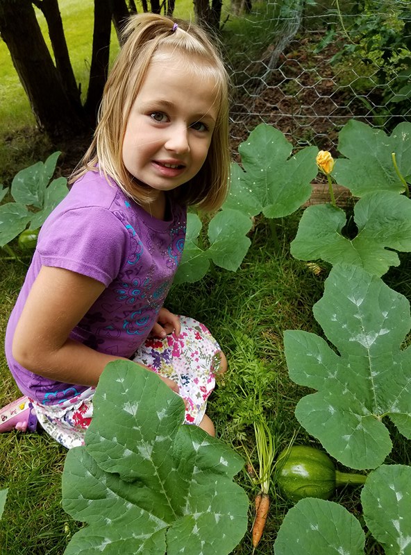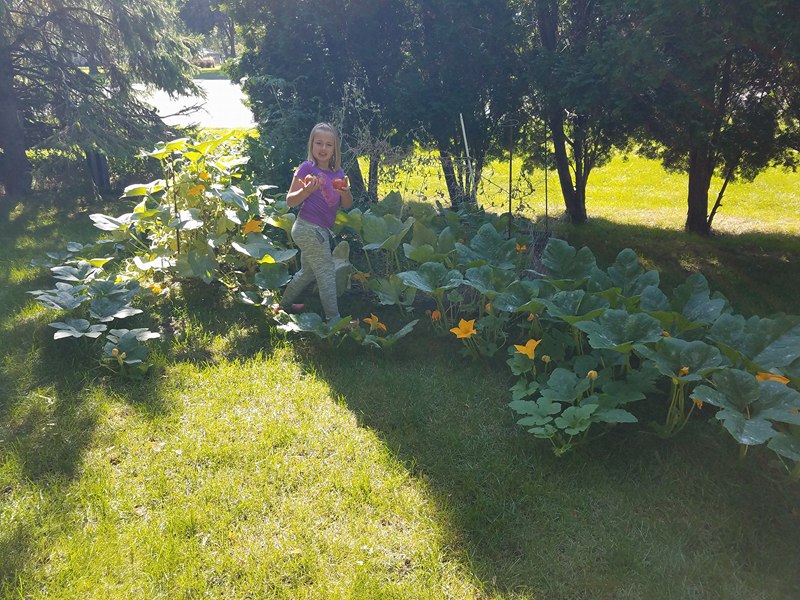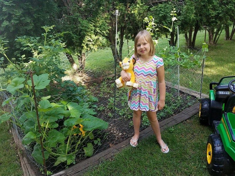 Without the peas, we had a lull in our garden action. Except to watch the pumpkin vines continue to grow. And grow, and grow! See Molly all the way in the back??