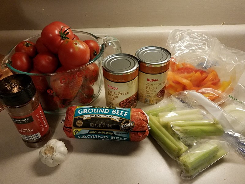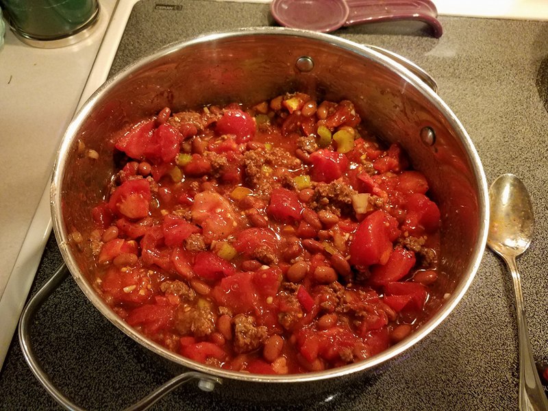 We had a batch of tomatoes red all at once, and with some from my Father-in-Law’s garden, last week we made homemade spaghetti sauce, and also homemade chili.