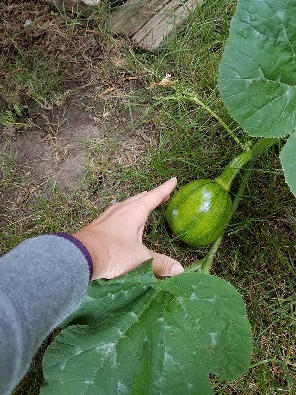 Then finally we saw our first pumpkin, and some green tiny tomatoes starting to grow! We couldn’t help but pull a few carrots here and there as well, just to “check their progress”…
