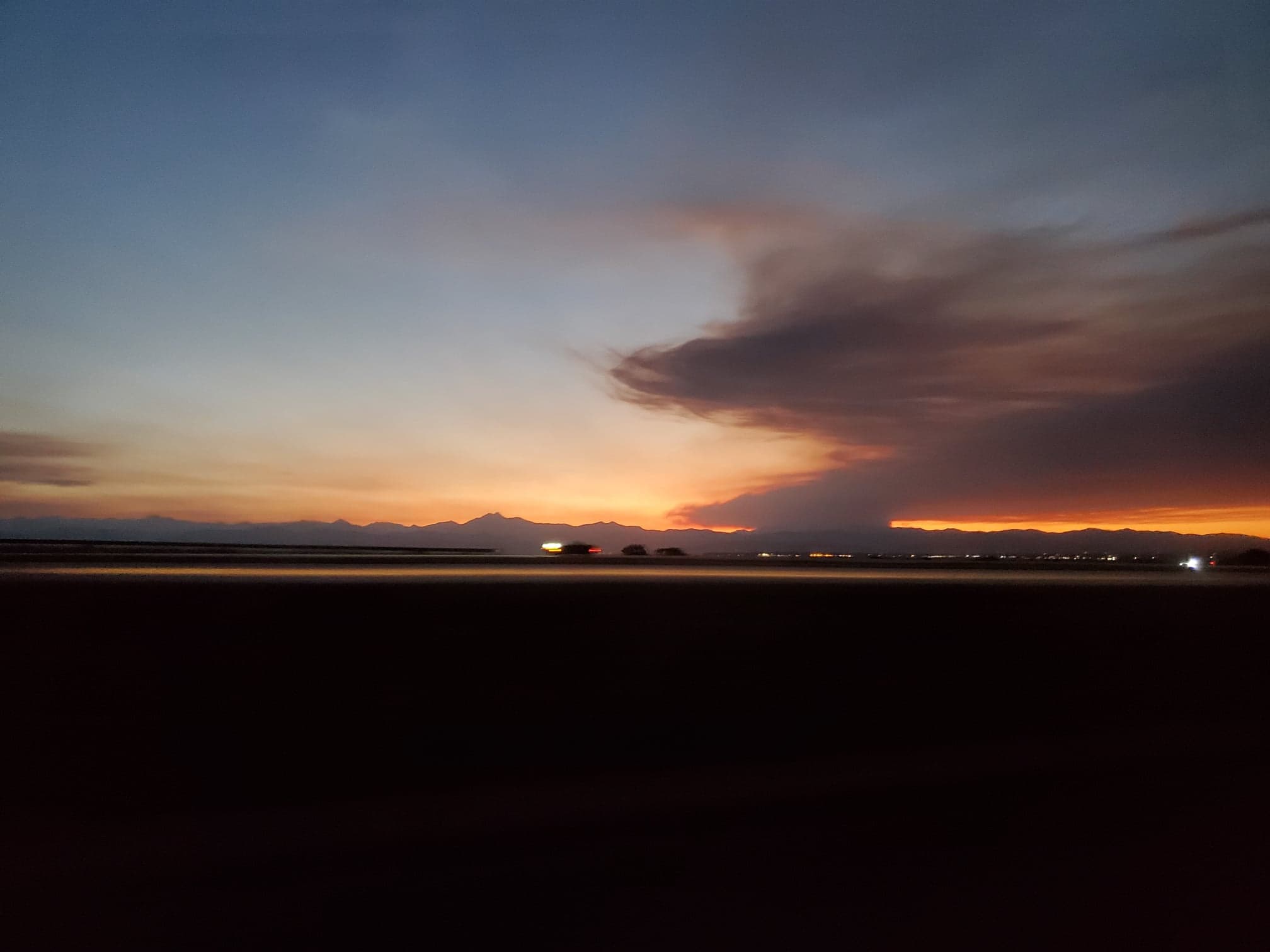 Maybe you’ve heard, there are several big forest fires in the Rocky Mountains of Colorado. You can smell it in the air, and see the smoke as a haze in the sky. Ash has even been settling on the cars parked outside overnight! We could see the smoke billowing up from the area of one of the bigger fires at sunset earlier this month: