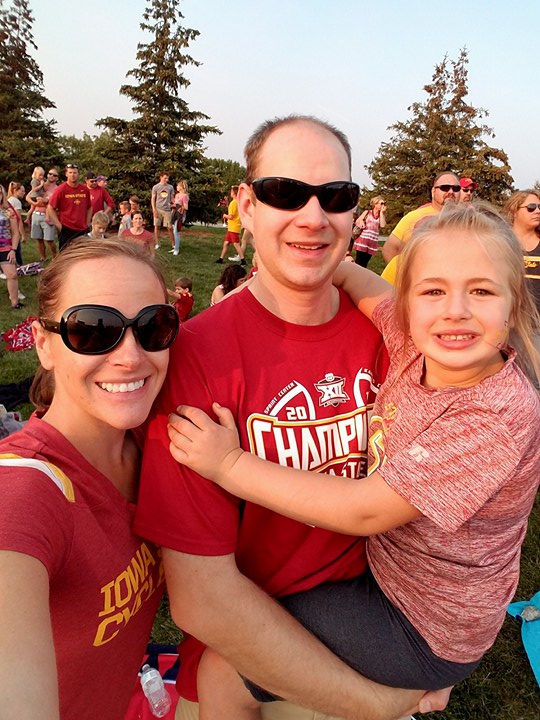 With the new season, though, we have some new things. Things that Drew was never a part of, which is a little easier. Like our ISU season football tickets we decided to purchase. The games have been fun to be a part of, and Molly is really enjoying the atmosphere: