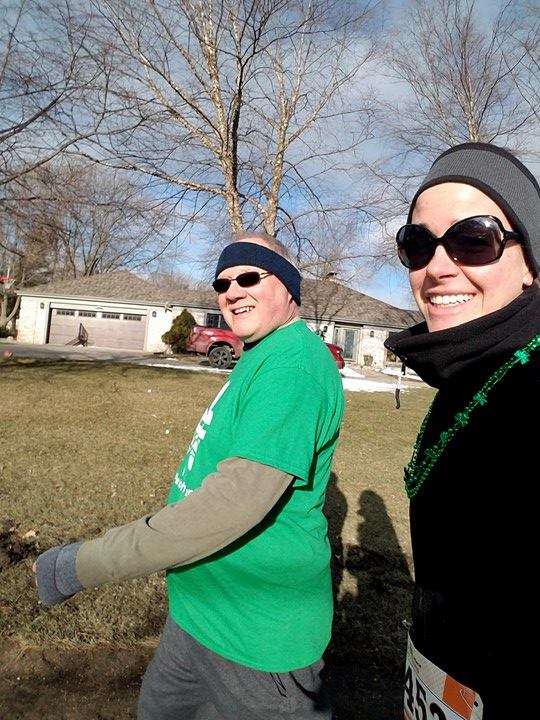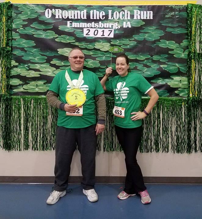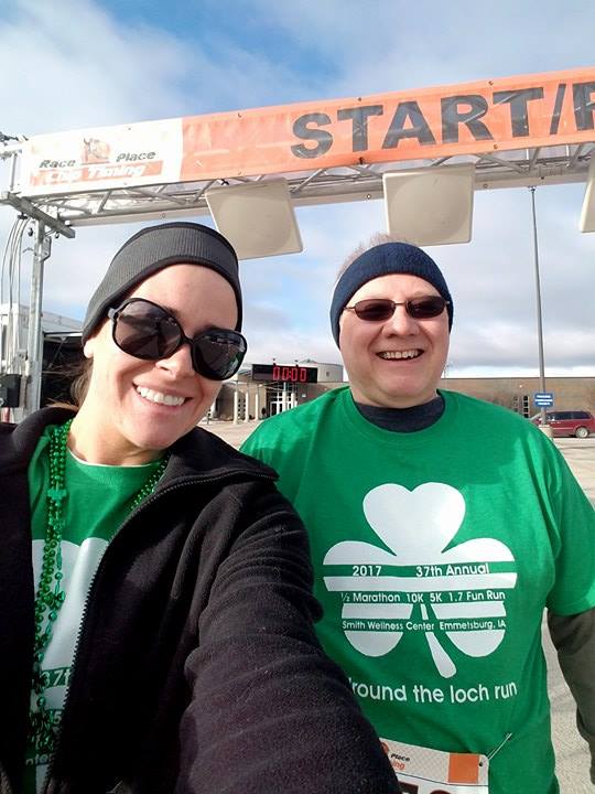 Then we had a day to re group and pack up again for St Patrick’s Day weekend in Emmetsburg, Josh’s hometown. There they have big celebration since they are the Sister City of Dublin! We started off the party with a fun run/walk that Josh’s dad and I did Saturday morning. Here’s us before, during, and after in front of a fun prop wall!